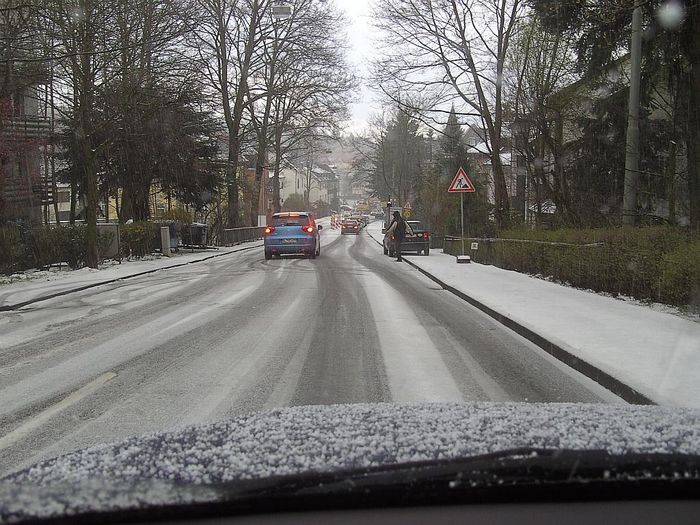Auf der Heimfahrt plötzlicher Schneefall vor Königsstein! Ganz schön glatt!